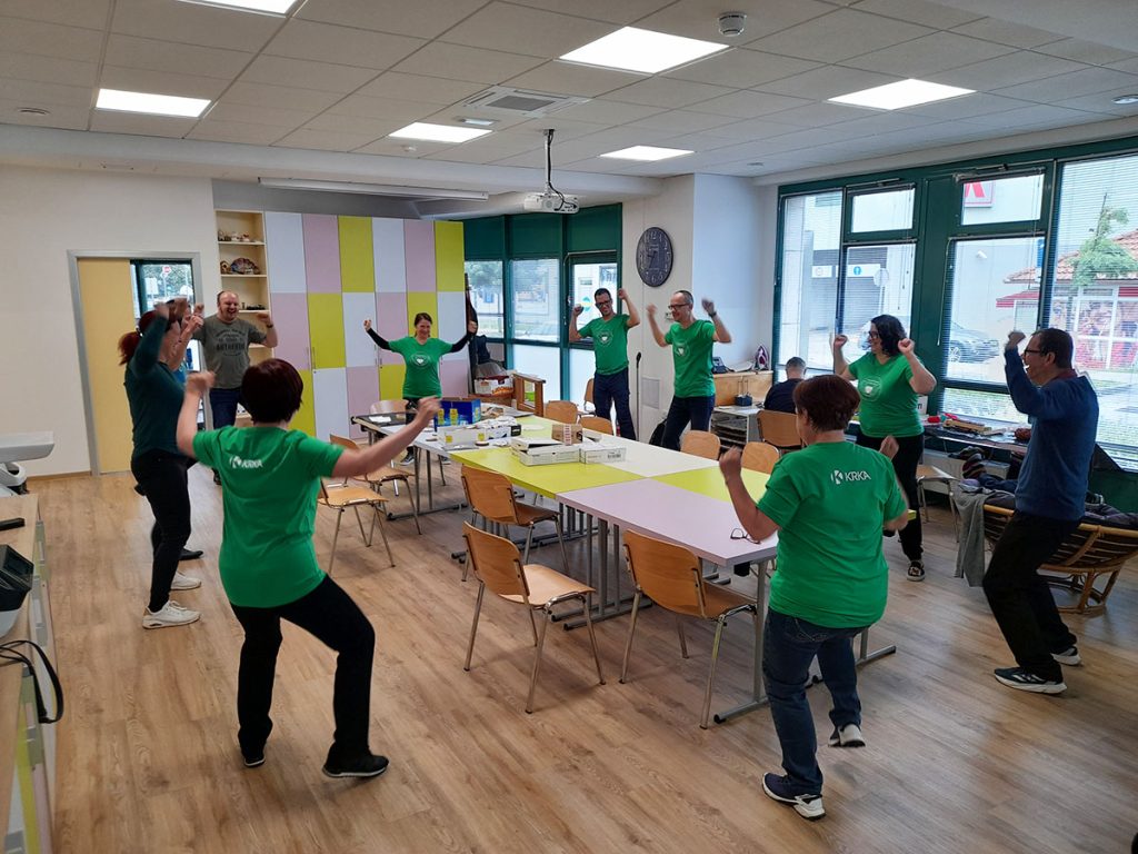 Prostovoljka Maja je nato s pomočjo sodelavka izvedla energijske vaje za zmanjševanje stresa, krepitev odpornosti in boljše počutje. Uporabniki pa so spoznali nove vaje, ki jih bodo lahko vnesli v jutranjo telovadbo, ki je že stalnica v VDC Sonček Novo mesto. Druženje je bilo sproščeno, pri izvajanju vaj smo se zabavali, smeha ni manjkalo. Na koncu so prostovoljke prikazale še metodo, ko s pritiskanjem na določene točke na telesu umirimo telo in duha. Prijazno smo se zahvalili vsem Krkinim prostovoljcem in jih povabili, da se srečamo še kdaj!