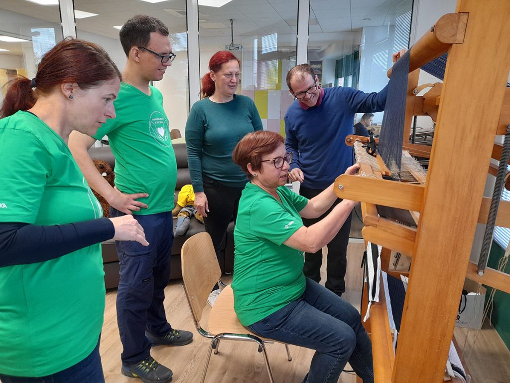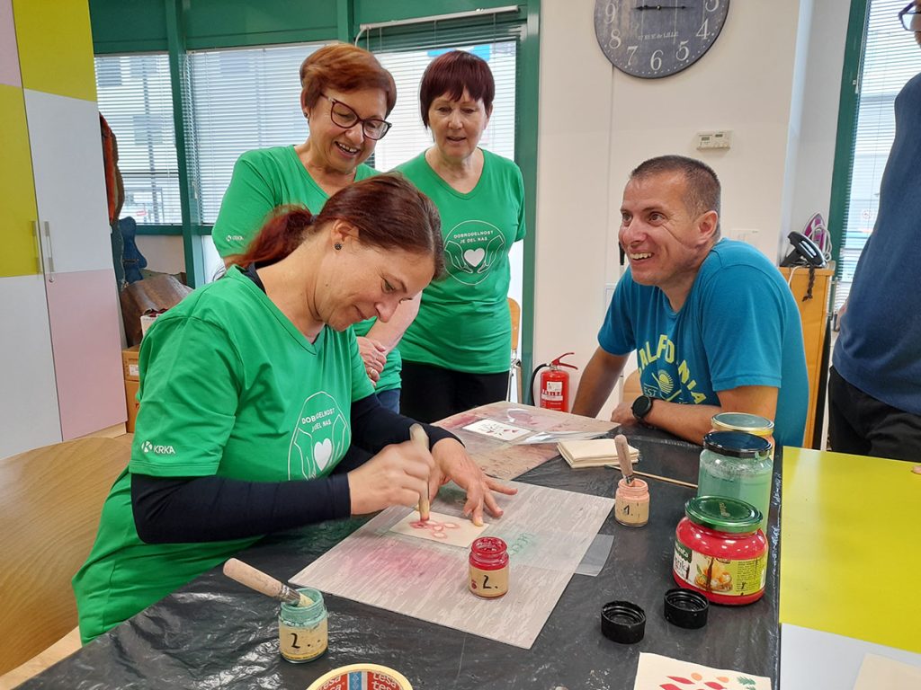 Humanosti Krkinih delavcev s tem še ni bilo konec, saj so se uporabnikom naslednji dan, tj. 8. maja, v VDC Sonček Novo mesto pridružile štiri prostovoljke. Sončki so prostovoljkam predstavili celotno proizvodnjo izdelkov in kako delo prilagajamo uporabnikom. Prostovoljke pa so se preizkusile v tapkanju (faza pri izdelavi novoletnih čestitk) in pri delu na statvah. Ugotovile so, da je v vsak izdelek vloženega veliko truda.
